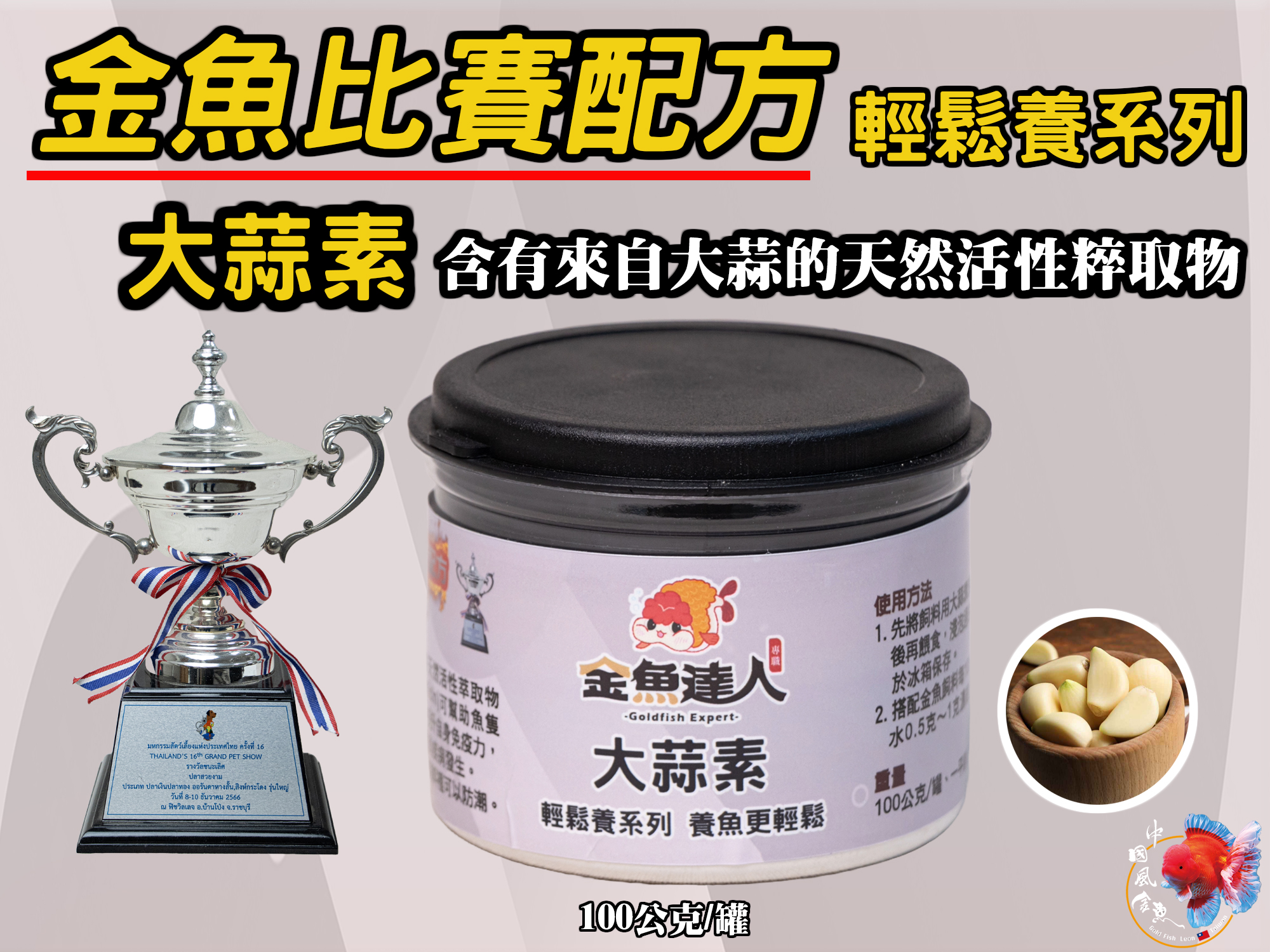 2.搭配金魚飼料每100克飼料,混水0.5克-1克濃縮大蒜素。