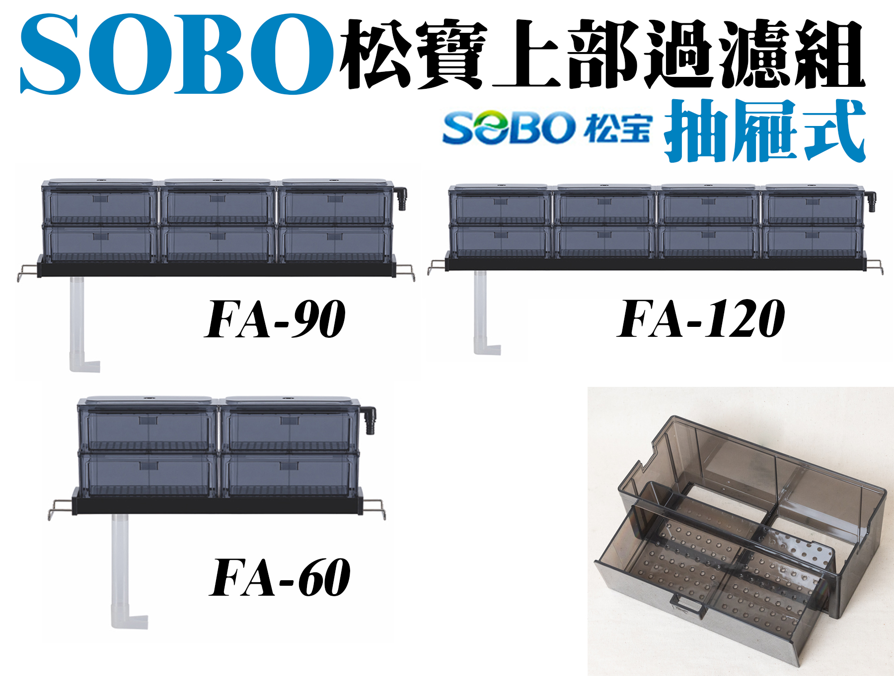 抽屜式上部過濾,更換白棉耗材更方便